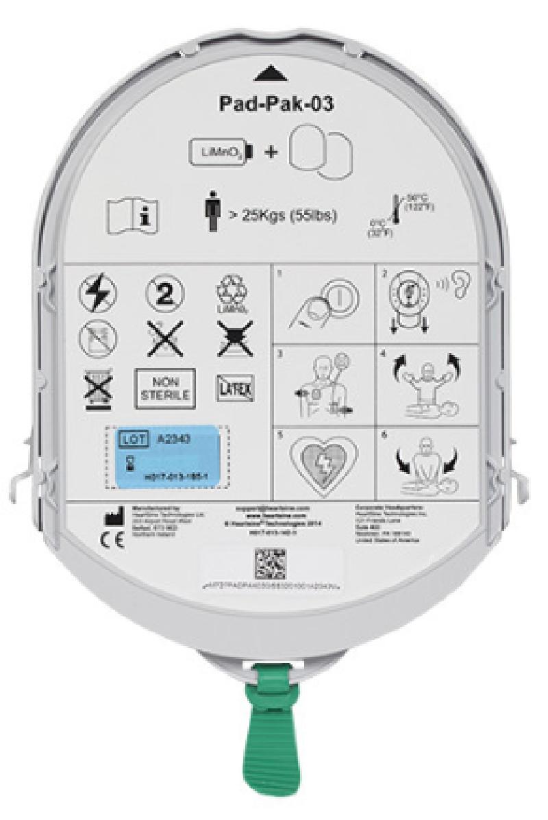 Il PadPak ha una capacità di ca. 60 minuti di utilizzo ininterrotto del defibrillatore o di ca. 30 scosse di 200 Joules. Dentro il DAE, in stand-by, il Padpak durerà ca. quattro anni. Il defibrillatore eseguirà l'autodiagnosi e la spia lampeggerà di verde finché l'esito di questa autodiagnosi è positivo.